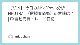 FXトレード日記 【3/19】📊 今日のAIシグナル分析:NEUTRAL(信頼度65%)の意味は? | FX自動売買トレード日記