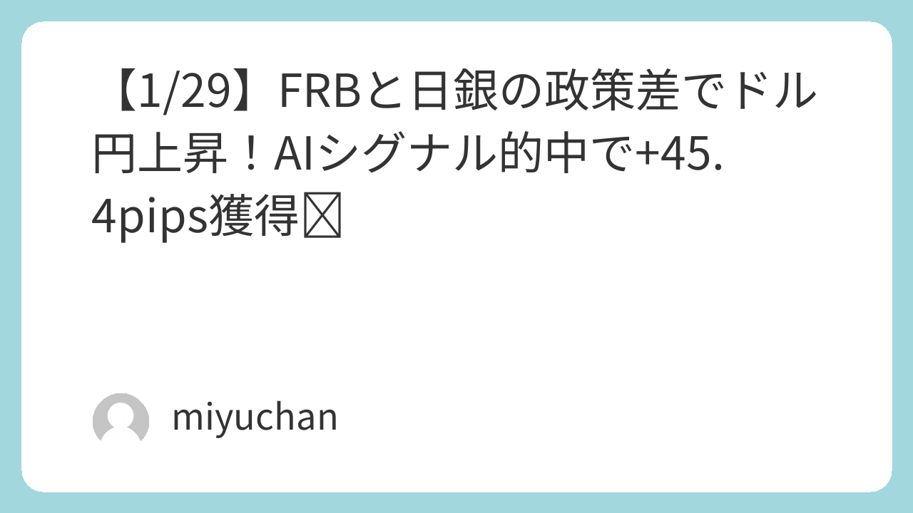 【1/29】FRBと日銀の政策差でドル円上昇!AIシグナル的中で+45.4pips獲得✨