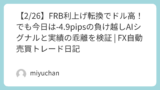 FXトレードを始めて数ヶ月の私だけど、AIの分析とファンダメンタルズの関係性がだんだん見えてきて、めっちゃ勉強になってる!今日の相場を一緒に振り返ってみよう🌟