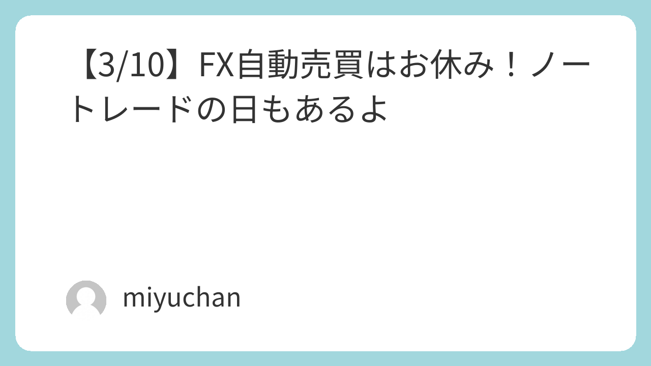 【3/10】FX自動売買はお休み!ノートレードの日もあるよ