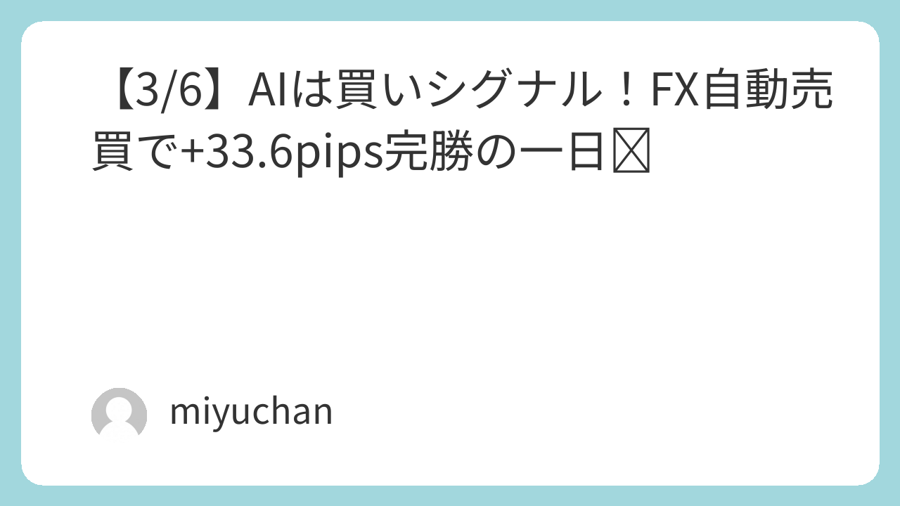 【3/6】AIは買いシグナル!FX自動売買で+33.6pips完勝の一日✨